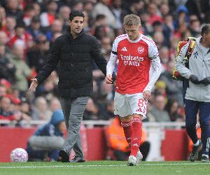 本輪英超阿森納2-0西漢姆聯,厄德高上半場第19分鐘與對手膝對膝碰撞,隨后繼續(xù)在場上堅持了10分鐘后被傷退離場。
