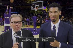今日前NBA球員、現(xiàn)湖人電臺(tái)Spectrum SportsNet解說員丹尼-格林現(xiàn)場(chǎng)解說湖人VS勇士的季前賽。