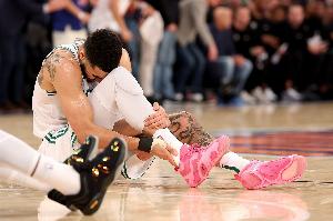 在更衣室里,塔圖姆被他的訓(xùn)練師和母親布蘭迪-科爾包圍著,他無法得到安慰:“我真的坐在那里哭了兩個(gè)小時(shí),因?yàn)槲业哪X海里閃過無數(shù)念頭:‘天啊,我的職業(yè)生涯結(jié)束了嗎?我會(huì)被交易嗎?所有的合作伙伴都會(huì)拋棄我嗎?’我的籃球生涯在我眼前閃現(xiàn),”他說,“我正處于巔峰時(shí)期,是世界上最好的籃球運(yùn)動(dòng)員之一,但感覺這一切都被奪走了?!?/p>