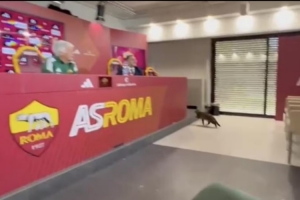 《羅馬體育報》曬出的視頻顯示,當加斯佩里尼回答記者提問時,一只貓闖進了新聞發(fā)布廳。這只貓咪恰好就在加斯佩里尼發(fā)言的講臺附近開始喵喵叫,教練關于本賽季陣容可能調整的論述被貓叫聲打斷。