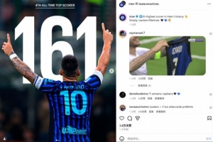 數(shù)據(jù)統(tǒng)計(jì)顯示,他也也追平馬佐拉并列國米隊(duì)史射手榜第4位。