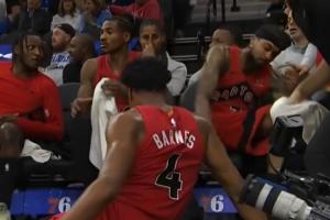 11月9日猛龍在客場輸給76人,比賽第三節(jié)還剩6分25秒時,英格拉姆在替補(bǔ)席上怒砸水瓶,砸到工作人員,水濺得到處都是,需等待球館地板變干,因此導(dǎo)致比賽延誤。