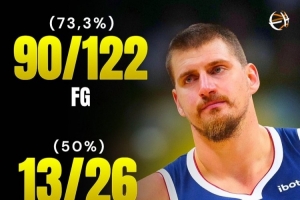 體育資訊11月13日訊 過去八場比賽,約基奇場均得到28.5分13.1籃板11.1助攻,命中率73.2%,三分命中率50%,罰球命中率85%。