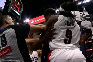 開(kāi)拓者鵜鶘次節(jié)中段,一次籃下卡位之后,格蘭特和米西突然爆發(fā)沖突,開(kāi)拓者鵜鶘雙方多名球員介入,最終格蘭特米西被驅(qū)逐,夏普瓊斯各吃1T。