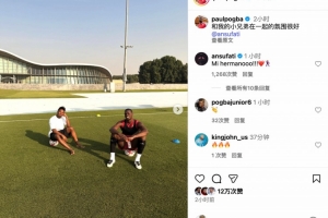 博格巴社媒配文寫道:和我的兄弟在一起,感覺超棒!