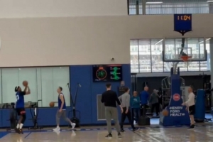 目前歸期未定!艾維手術(shù)后首次進行投籃訓(xùn)練 底角三分6中3