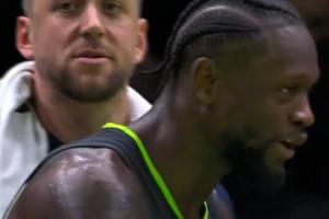比賽最后時刻,威少壓哨籃板達成三雙,蘭德爾轉頭對迪文說:“He got a Westbrook triple double(他拿了一個威少式的三雙。).”