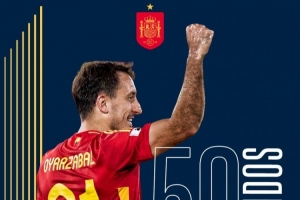 奧亞薩瓦爾迎西班牙國(guó)家隊(duì)50場(chǎng)里程碑,前49場(chǎng)19球10助攻+1冠軍