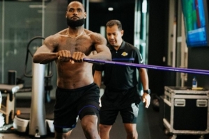 詹姆斯與私人訓練師邁克·曼西亞斯