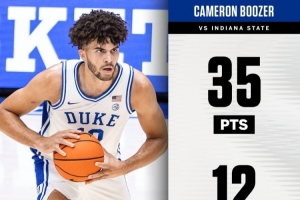 體育資訊11月17日訊 在此前的一場NCAA比賽中,杜克大學(xué)100-62大勝印第安納州立大學(xué)。卡梅隆·布澤爾狂砍35分12籃板5助攻3搶斷3蓋帽。而這僅僅是他代表杜克打的第四場正式比賽。