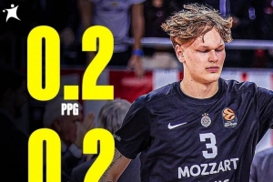 體育資訊11月17日訊 明年的熱門新秀穆里寧截止目前為止,在歐籃聯(lián)只出場4次,場均出場時(shí)間僅為1分55秒,而他的場均數(shù)據(jù)可以忽略不計(jì),4場比賽合計(jì)就得到1分,場均為0.25分,也沒有籃板、助攻進(jìn)賬。