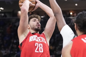 本場比賽,火箭中鋒阿爾佩倫·申京31中11,其中三分1中0,罰球10中8,得到30分13板8助2蓋帽5失誤,正負值+5。