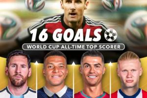 世界杯歷史射手榜(*為現(xiàn)役球員):