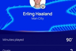 哈蘭德在本場(chǎng)比賽首發(fā)出戰(zhàn),4射門3射正,打進(jìn)2球,評(píng)分8.8全場(chǎng)最高。