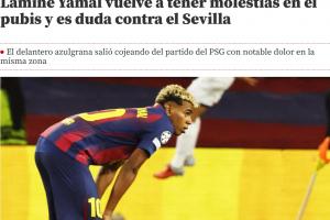 世體表示,亞馬爾的恥骨區(qū)域再次出現(xiàn)嚴(yán)重不適,此前他曾因?yàn)樵搮^(qū)域受傷而缺陣了約三周時(shí)間。
