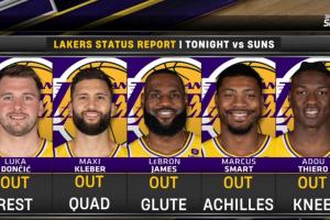 缺陣?yán)碛桑簴|契奇休息、克萊伯四頭肌、詹姆斯臀大肌受傷、斯瑪特跟腱、阿杜膝蓋