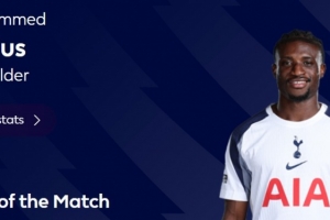 本場比賽熱刺球員庫杜斯發(fā)揮出色,打進一球并且助攻一次,完成6次過人,賽后他也當選英超官方球迷票選全場最佳球員。