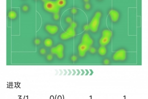 B費本場數(shù)據(jù):3次關鍵傳球,3射1正,1次中框,3次解圍